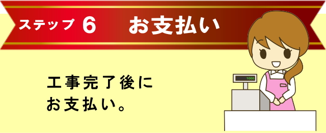 安心の後払い! 設置完了後、試運転、内容に相違ないかご確認の上、お支払いください。