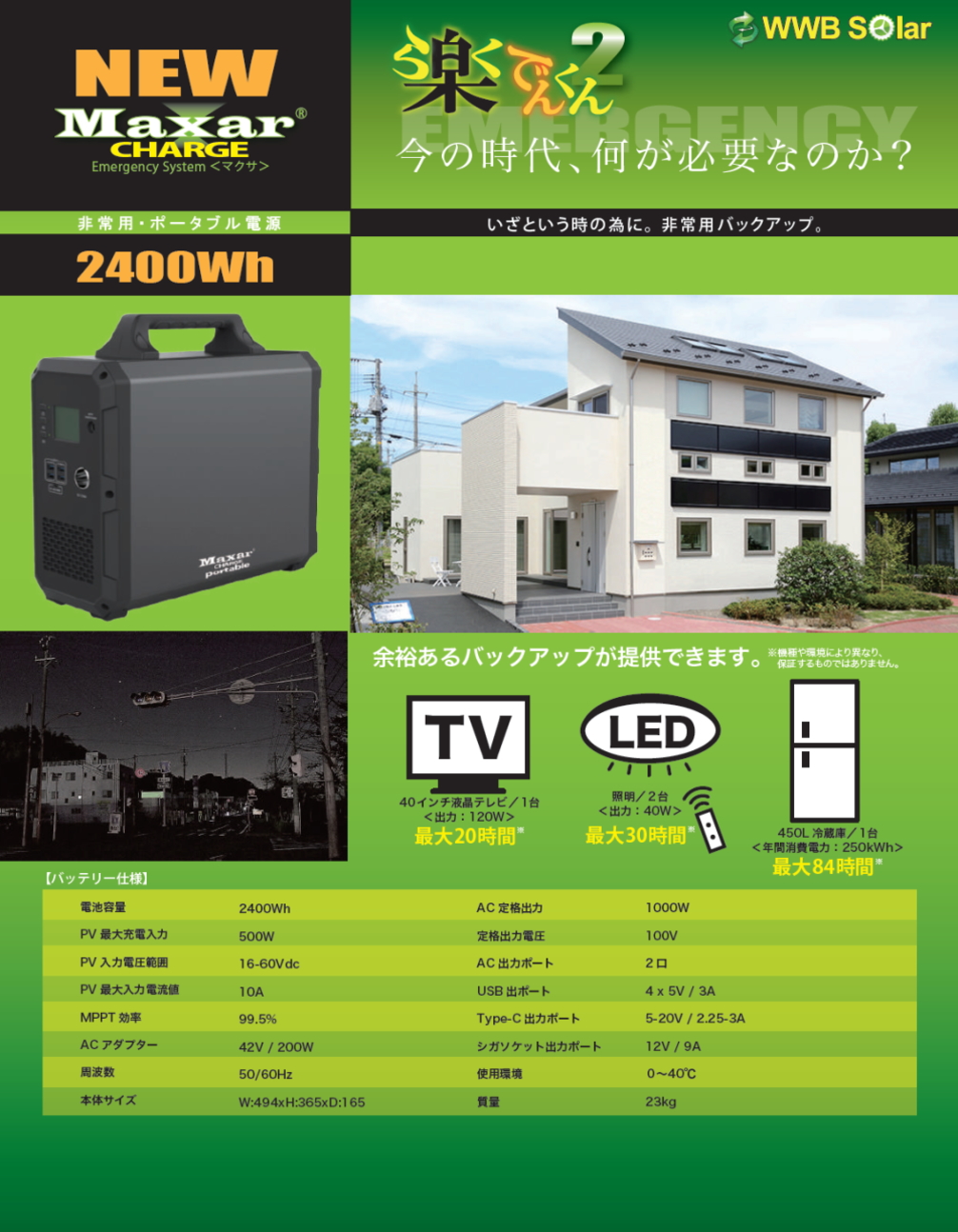 楽でんくん2 2400Wh1台+175W モジュールセット