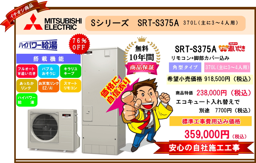 ![]() | 3人~5人 家族 | 370Lタイプ |